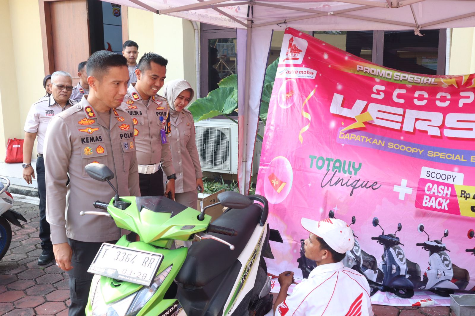 Kegiatan yang dipusatkan di halaman Mapolres Cilegon ini meliputi pemeriksaan kesehatan gratis, donor darah bersama PMI, serta servis motor Honda gratis untuk masyarakat dan mitra ojek online.